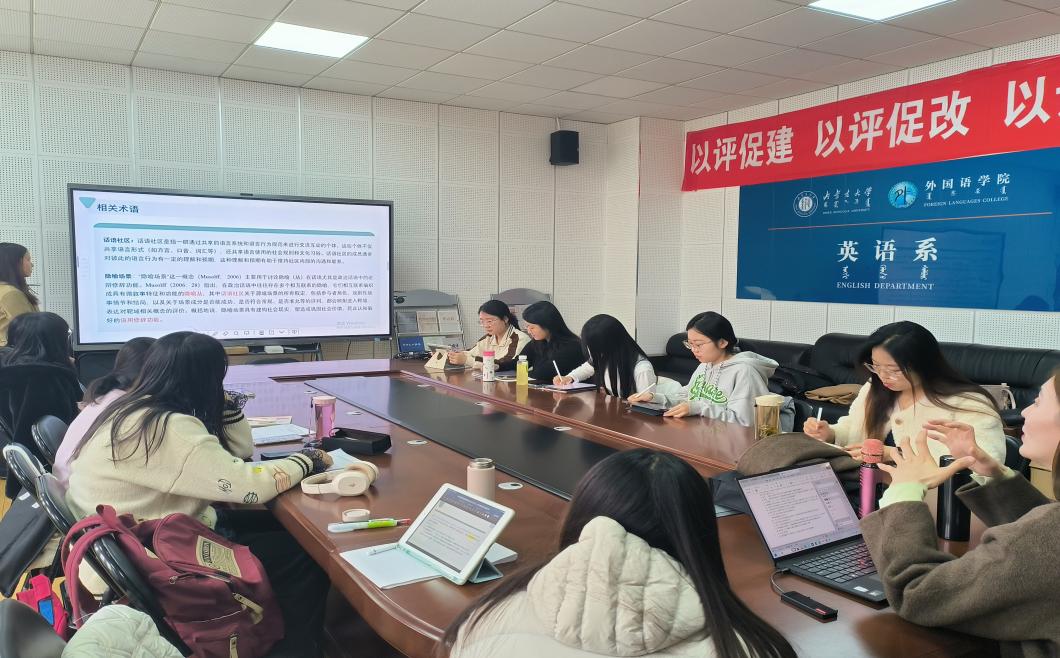 活动期间,师生们围绕 “多模态隐喻识别方法”“隐喻丛”“转喻丛” 以及 “批评隐喻分析” 等前沿议题,就隐喻在生态语言学研究中的所发挥的作用展开了深入的探讨与交流。大家分享最新研究成果,各抒己见,现场学术氛围热烈非凡。不仅如此,论坛还设置了学术素养训练环节,布置了文献查找任务,包括梳理论、文书籍中 “多模态隐喻” 的类型及其定义,明确 “转喻丛和隐喻丛” 的概念,阐释 “转喻”“隐喻”“提喻”“语法隐喻”“概念隐喻” 并佐以实例。