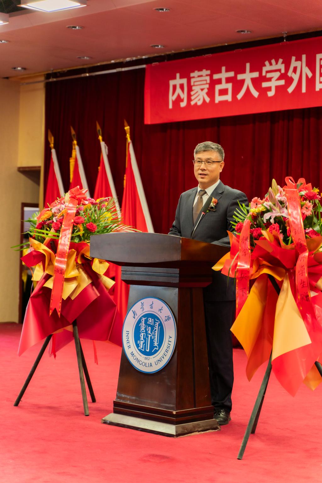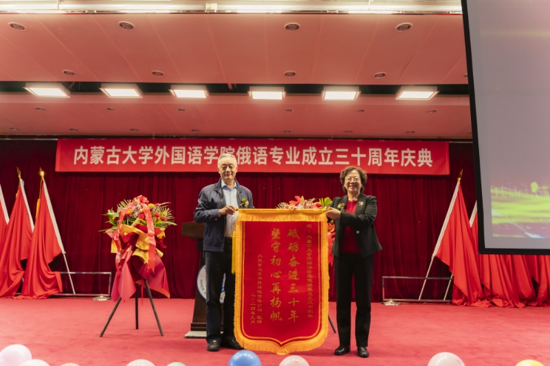 用人单位单表、内蒙古运筹科技有限责任公司总经理盛利忠对内大俄语专业人才培养质量给予了充分肯定,表示希望与俄语系进一步深化合作,共同发展,并送上锦旗,祝俄语系“坚守初心再扬帆”!