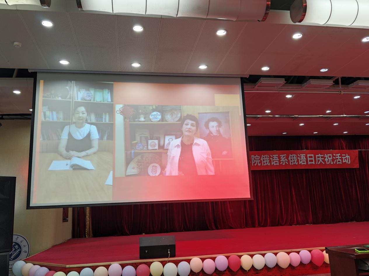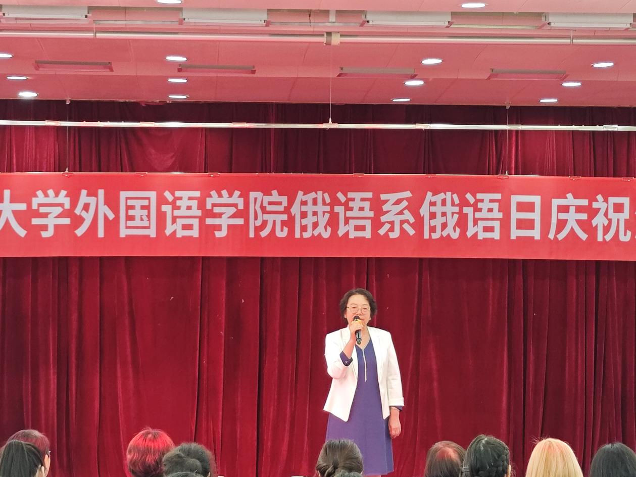 活动伊始,俄语系系主任李玲君教授发表开幕致辞。她表示非常高兴参与此次活动,普希金不仅在俄罗斯,甚至在世界文学史上都占据着重要地位。举办“俄语日”活动的宗旨在于拓展学生的实践活动,激发学生学习俄语的兴趣。她对来自俄罗斯卡尔梅克国立大学的学生们表示热烈欢迎,对俄语系全体师生及外籍教师瓦莲金娜表示衷心感谢,并对同学们的精彩表现充满期待,希望与大家共同度过一段难忘的欢乐时光。
