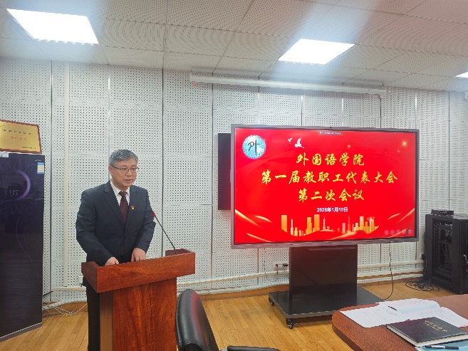 大会在庄严的国歌声中拉开帷幕。学院党委书记李国珍主持会议并致开幕辞,对过去一年学院在教学、科研、国际交流等方面取得的成绩给予高度评价。他指出,教职工代表大会是学院落实民主办学的重要形式,是全体教职工参与学院管理的重要平台,希望通过本次会议进一步统一思想、明确目标,为学院未来的发展注入新的活力。
