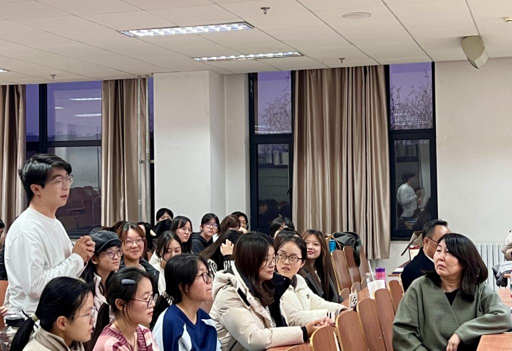 在互动环节,同学们踊跃提问,现场气氛热烈。多位学生就课程设置、奖学金申请、文化适应等话题与代表团深入交流。其中,房光宇同学主动尝试用俄语询问卡尔梅克国立大学学生宿舍与生活设施情况。尽管他的俄语表达尚不熟练,但这份敢于开口、勇于实践的勇气,恰恰体现了外语学习者最可贵的品质,赢得了俄方代表的赞许和鼓励。方虹霓同学则关心留学生使用图书馆及电子资源的权限,得到了对方的细致解答。同学们提问积极、思考深入,展现出对赴俄留学的浓厚兴趣和认真态度。