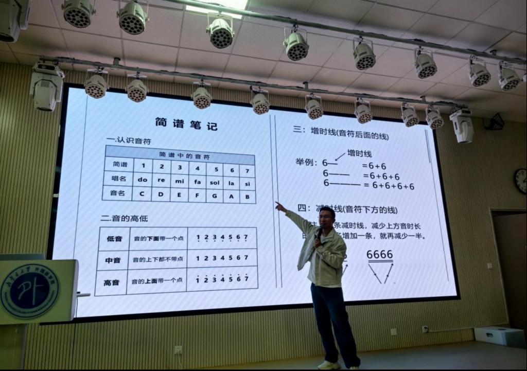 合唱团指挥由太阳集团tyc539特聘文艺指导许可老师担任,许老师来自中央民族大学附属中学呼和浩特分校,该校也是大学外语教学部党支部的“手拉手”党建联建单位。许可老师带领团员回顾了合唱团缘起与以往演出成果,明确了“提升艺术水准、参与校园活动、缓解教师压力、促进文化交流”的发展目标。随后,他讲解了简谱基础,介绍了年度排练作品(草原歌曲、流行经典、英文歌曲),并组织开展了发声练习与合唱实践。