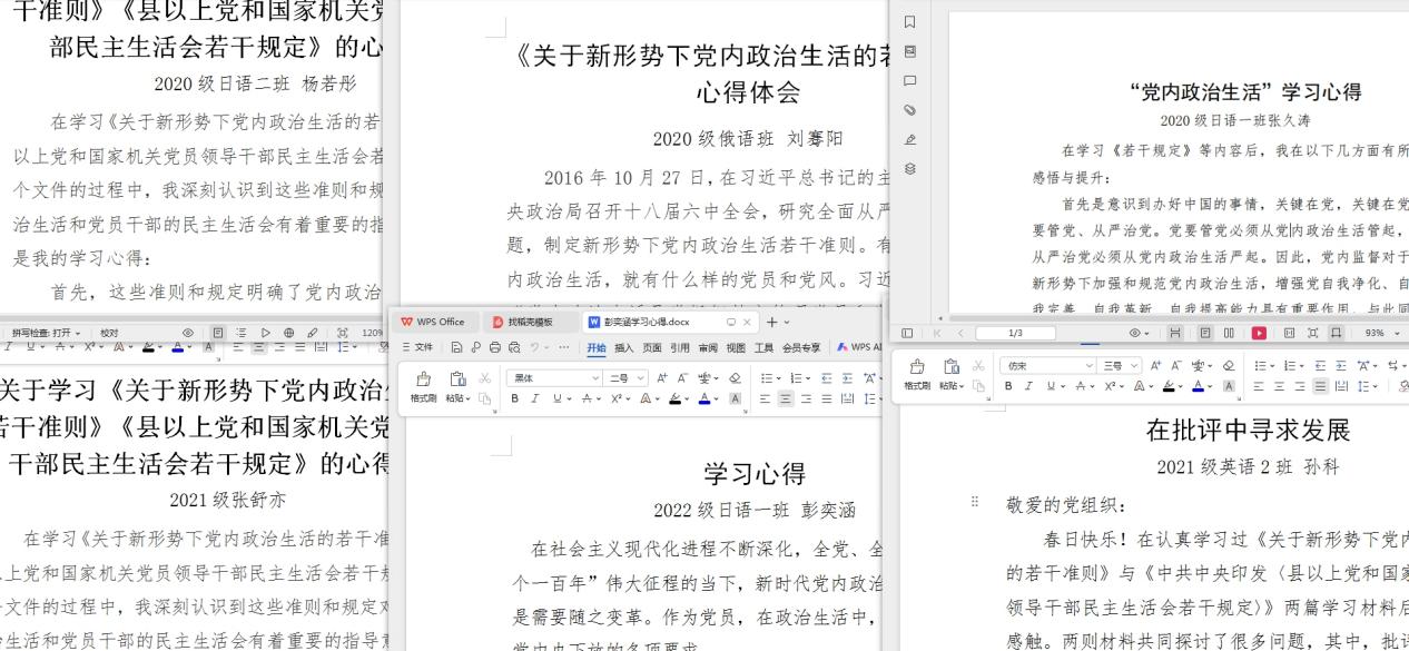 学院各党支部通过多种形式开展对《准则》和《规定》的学习。各教工党支部通过线上、线下等形式召开支部大会,学习文件精神,累计参与学习人次达40余人;研究生党支部通过召开支委会、支部大会、安排党员干部自学的形式,了解《准则》和《规定》内容,累计覆盖党员100余人;本科生党支部通过党小组和自学的形式开展学习,学习后通过撰写学习心得巩固学习效果,累计提交学习心得71份。