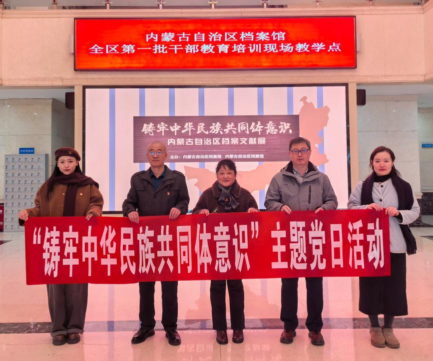 活动中,大家参观了“铸牢中华民族共同体意识”内蒙古档案文献展,展览精选475件珍贵档案文献资料,通过“伟大创举 实现民族区域自治”“赢得模范自治区崇高荣誉”“长期呵护模范自治区崇高荣誉”“牢记嘱托 感恩奋进 办好两件大事”四部分,生动展现和充分阐释内蒙古地区是中国共产党最早建立党组织的民族地区,内蒙古自治区是在中共中央直接领导下建立的,内蒙古是在党中央的支持下发展起来的,内蒙古工作中出现的重大偏差都是党中央帮助纠正的,内蒙古新时代的发展成就是在习近平总书记亲切关怀和指引下取得的,内蒙古作为模范自治区模范就模范在听党的话上的“六句话”的事实和道理。突出展示党的十八大以来自治区党委团结带领全区各族人民,全面贯彻铸牢中华民族共同体意识工作主线,努力完成习近平总书记交给内蒙古的五大任务和全方位建设模范自治区两件大事,为实现“闯新路、进中游”目标,凝心聚力、奋勇前行的生动实践。