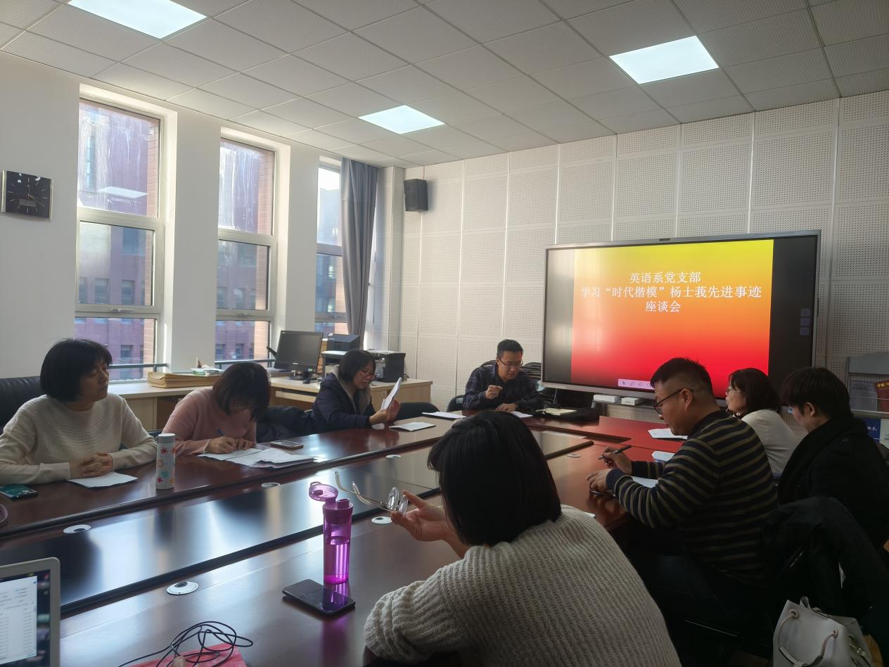 2024年12月5日下午,英语系全体教职工在办公室召开了“学习时代楷模杨士莪先进事迹”主题座谈会。本次座谈会旨在深入学习杨士莪同志的先进事迹,弘扬他的崇高精神,激励老师们在新时代展现新担当、实现新作为。
