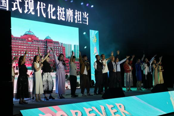 在两场晚会上,由15名党员与非党员教师组成的“大外统一战线合唱团”以中文、蒙语、英语精彩演绎《Love You More Than I Can Say》《凤凰花开的路口》《草原上升起不落的太阳》三首经典曲目。新颖活泼的编排融汇中西,咏唱青春离别,礼赞家国情怀。支部书记张红梅深情朗诵,伊雅媛、汪岁寒、阿荣娜等教师领唱动人,深情传递了太阳集团tyc539教师对全体毕业生的美好祝愿与殷切期冀。整场表演热情洋溢,点燃现场氛围,赢得全场阵阵热烈掌声。