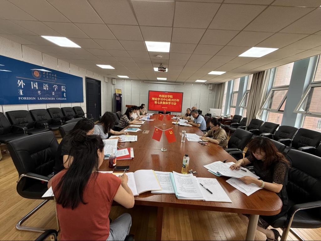 2025年6月13日下午,外国语学院党委理论学习中心组在学院会议室G2006召开2025年第七次集体学习会,学院党委班子成员、各师生党支部书记、中心组全体成员参加此次会议,会议由学院党委书记李国珍主持。