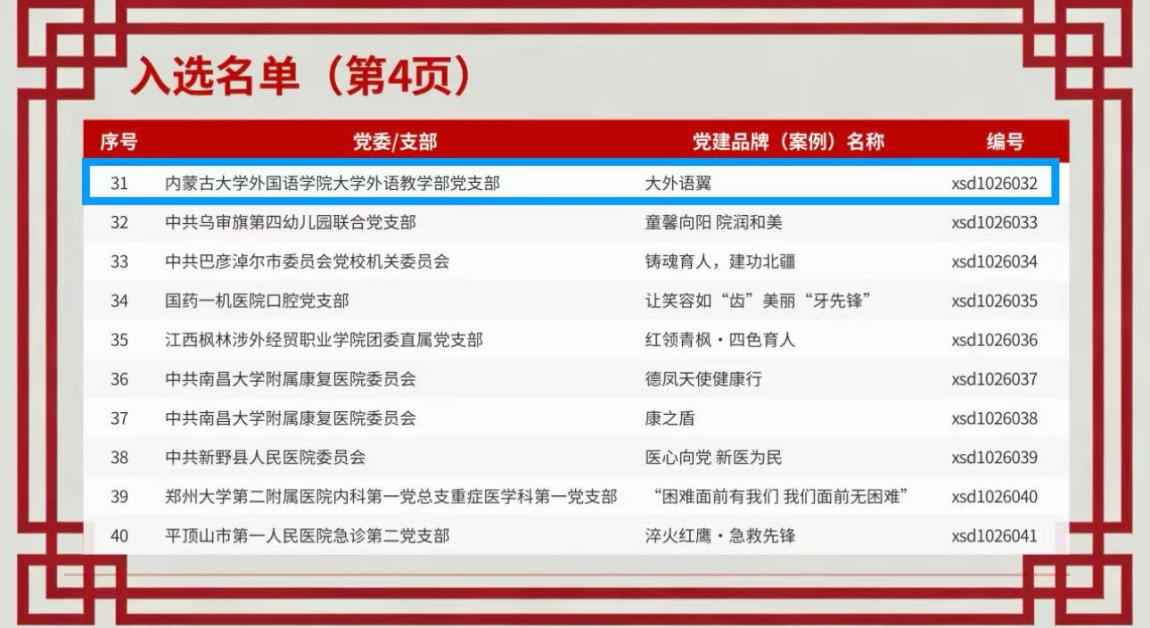 此次荣誉由时代国培(北京)教育科技研究院与新时代党建教育信息网联合颁发,评选自2025年5月启动,面向全国高校、医疗机构等各类单位党组织广泛征集党建品牌与案例,共收到来自14325家单位的20432个申报作品。评选过程严格坚持政治标准首位,突出党业融合、创新引领、实践导向三大核心,经过多轮严格遴选,最终确定170个优秀党建品牌(案例),具有极高的权威性与示范引领意义,充分体现了新时代基层党建工作的创新成果与实践价值。