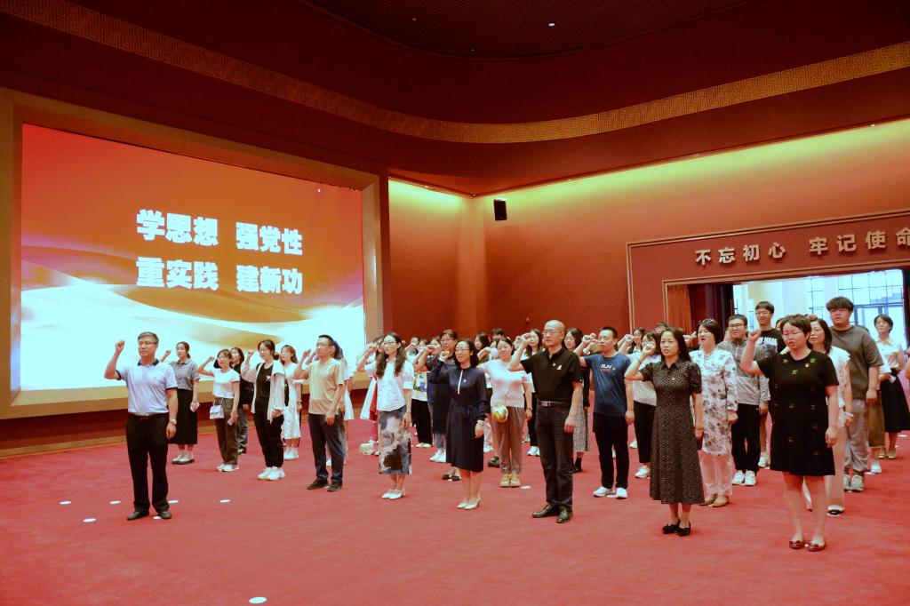 参观结束后,学院师生党员步入宣誓大厅,重温入党誓词。大家面向鲜红的中国共产党党旗,郑重举起右拳宣誓,铮铮誓言响彻大厅,让在场的每位同志都接受了一次深刻的党性教育和思想洗礼。