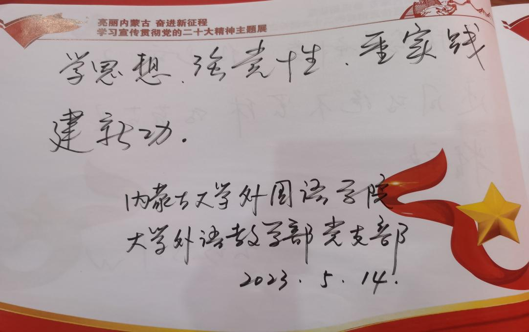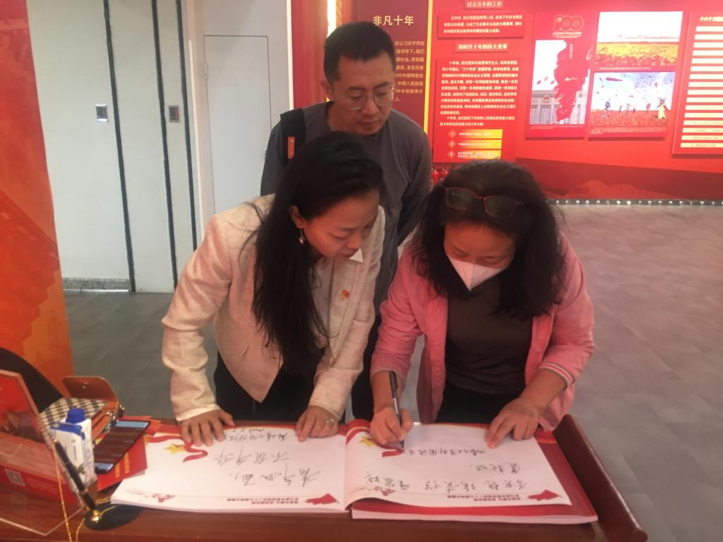 上午10:00支部党员在内蒙古展览馆集合,开始参观“学习宣传贯彻党的二十大精神主题展”。主题展设计制作恢宏丰富,图文并茂,详细展示了内蒙古如何学习宣传贯彻党的二十大精神,党员老师们一边参观,一边学习,感慨党的伟大和自治区的拼搏奋斗,在参观“努力完成习近平总书记交给内蒙古的五大任务”展板处老师们驻足良久,一起朗读了“五大任务”具体内容。参观学习结束后,支部在展览馆一楼中厅重温了入党誓词。