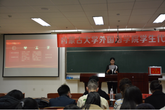 本次大会共五项议程:学院老师发言;学生工作汇报;换届大会;工作计划;听取和审议本次学生代表提案工作报告。