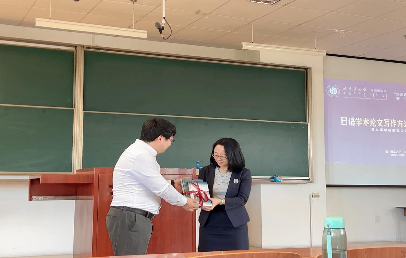 在最后的赠书环节,刘东波老师将自己参与撰写与编辑的著书送给太阳集团tyc539日语系图书室,周砚舒副院长代表日语系表达了感谢。此次讲座让我院师生对学术论文写作的方法与技巧有了更深的理解,并为我院师生的论文写作指导、教学、学习、实践提供了宝贵的经验。我院学生在讲座结束后纷纷表示,通过此次讲座对毕业论文的撰写有了信心,将会积极地尝试将自己的想法转化为论文。