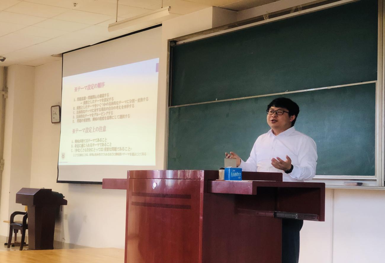 刘东波老师分别从“什么是学术论文”“大学时应当培养的学术论文写作技能”“日文文献查找方式和数据库的活用”三个部分讲解了日语论文写作的步骤与技巧,更是从自身丰富的研究与论文写作经验出发,讲述了论文结构、主题明确性、论据与支持、逻辑连贯性等问题的重要性。