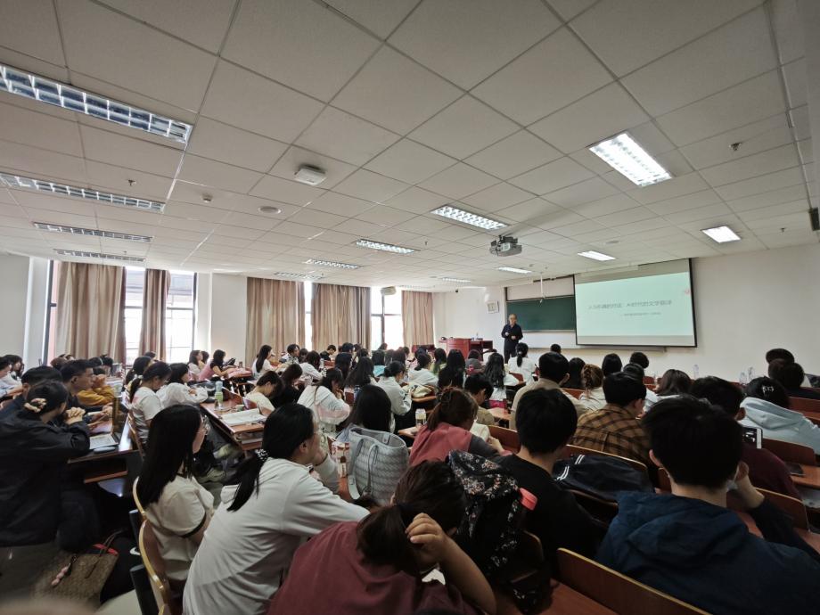 最后,李尧教授耐心解答了老师同学们有关AI与文学翻译的问题,现场学术交流氛围浓厚,争先向李尧教授提问。讲座完毕,全体师生爆发出热烈的掌声。本次讲座取得圆满成功。