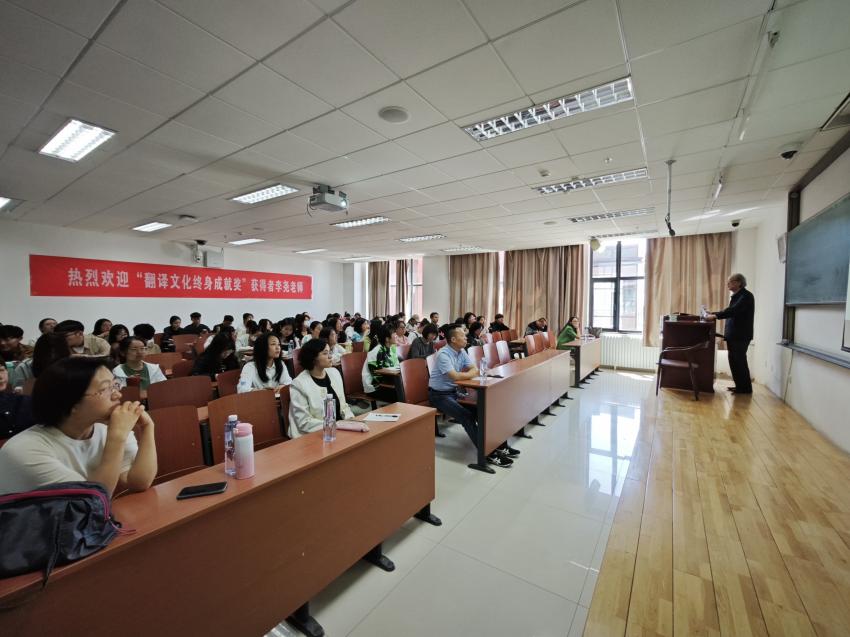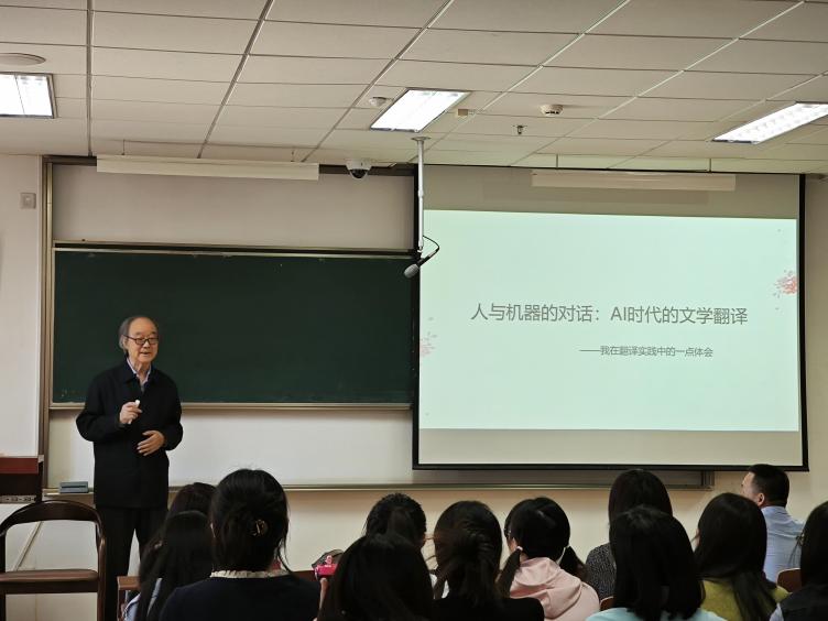 2024年5月15日上午,太阳集团tyc539和tyc539太阳澳大利亚研究中心联合举办了“外国语言文学研究基地论坛”第119次学术讲座,中国作家协会会员、资深翻译家、2024年“翻译文化终身成就奖”获得者李尧教授应邀在南校区卓越楼0515教室作题为“人与机器的对话:AI时代的文学翻译——我在翻译实践中的一点体会”的学术讲座。本次讲座由国际合作与交流处处长段满福教授主持,太阳集团tyc539师生100余人参与本次讲座。
