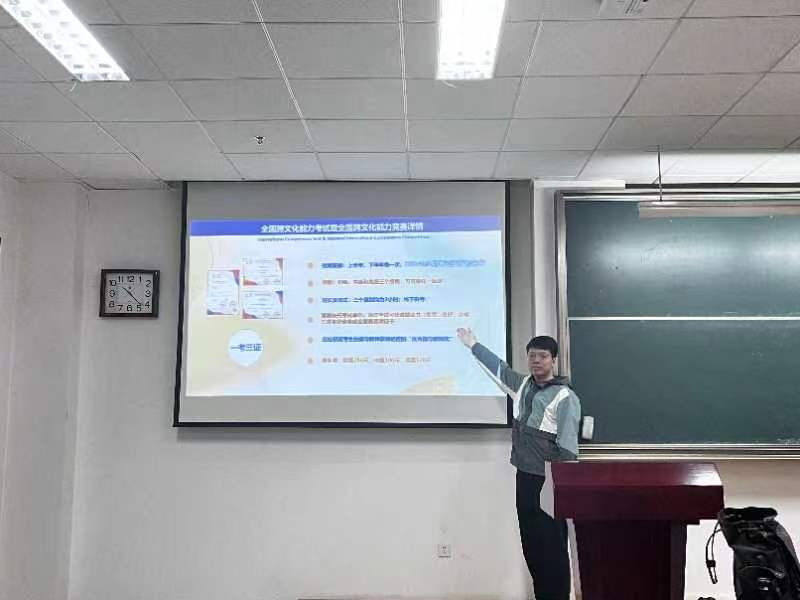 为了更好地让广大tyc539太阳学子了解跨文化能力,获取测评和提升自身跨文化能力的新途径,4月19日(本周五)上午学院邀请到了来自上海外语教育出版社跨文化能力测试中心的朱乔锐老师,在南校区XF0202教室举办了全国跨文化能力考试暨全国跨文化能力竞赛宣讲会。朱老师从跨文化能力考试的背景、价值、理论依据以及题型等方面介绍了全国跨文化能力考试暨全国跨文化能力竞赛。