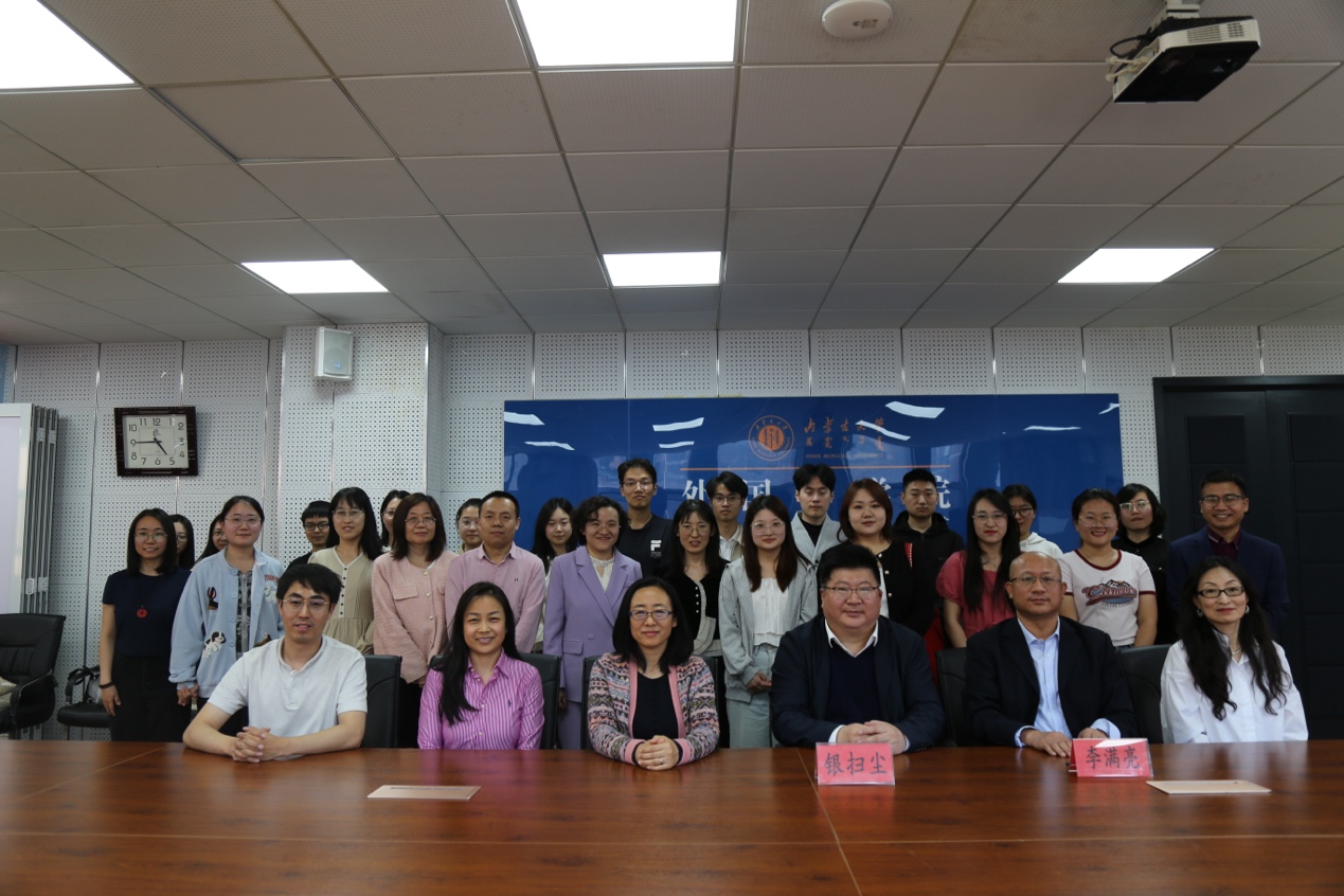 2025年5月14日下午,“外国语言文学研究基地论坛”第134讲在我院会议室举行。主讲人为黑龙江省政府外事办公室二级巡视员、黑龙江省政府首席英文翻译、黑龙江大学英语翻译硕士校外导师银扫尘老师,讲座由我院院长李满亮教授主持,学院师生参加。