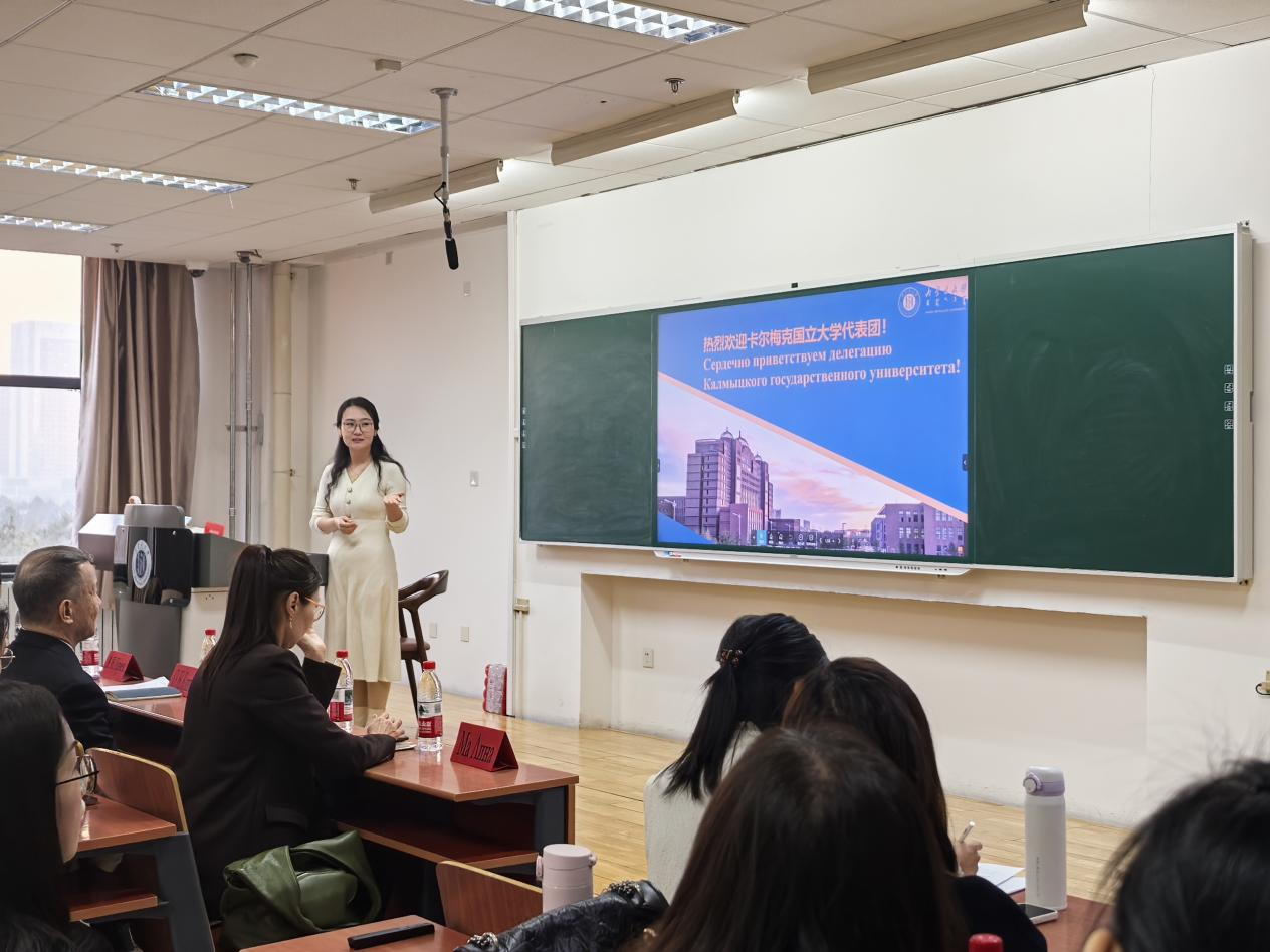 2025年11月20日下午,俄罗斯卡尔梅克国立大学副校长一行,在结束tyc539太阳—卡尔梅克国立大学孔子学院理事会会议后,与太阳集团tyc539俄语系师生举行交流座谈会,会议由俄语系系主任马丽娜主持。卡尔梅克国立大学副校长科尼耶娃·奥克萨娜·尼古拉耶夫娜、tyc539太阳-卡尔梅克国立大学孔子学院俄方院长加里亚耶娃·艾萨·尼古拉耶夫娜,以及孔子学院中方院长王建军教授分别从校际合作、孔子学院建设与学生联合培养等角度,与...